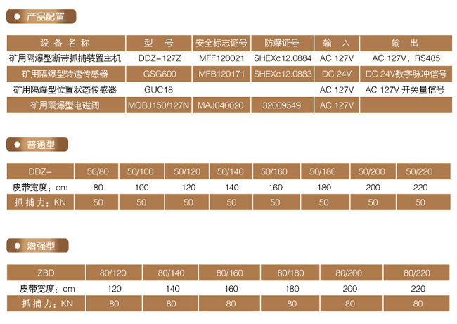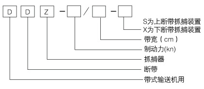 產品概況: DDZ-80型帶式輸送機用斷帶保護裝置,是根據《煤礦安全規(guī)程》第三百七十五條的規(guī)定:鋼絲繩芯帶式輸送機應設斷帶保護裝置要求,而專門設計的機電一體化智能型的專用產品。主要用于煤礦井下皮帶機的皮帶在斷帶、倒帶情況下的保護和監(jiān)測。 工作原理: 安裝于皮帶下方的速度傳感器實時檢測皮帶的運行狀況,當運行中的皮帶速度異常(斷帶或倒帶)超出設定范圍時,該檢測信號(數字脈沖信號)傳輸到控制主機(PLC),控制主機隨機進行數據處理并發(fā)出相應的控制指令,控制斷帶抓捕器機構動作,迅速抓捕住斷帶下滑或倒帶運行中的皮帶,從而將事故控制在初始階段,防止事故的進一步擴大。同時切斷皮帶輸送機控制回路電源,防止皮帶與驅動滾筒產生摩擦,并控制聲光報警器發(fā)出信號報警。 產品型號說明:
